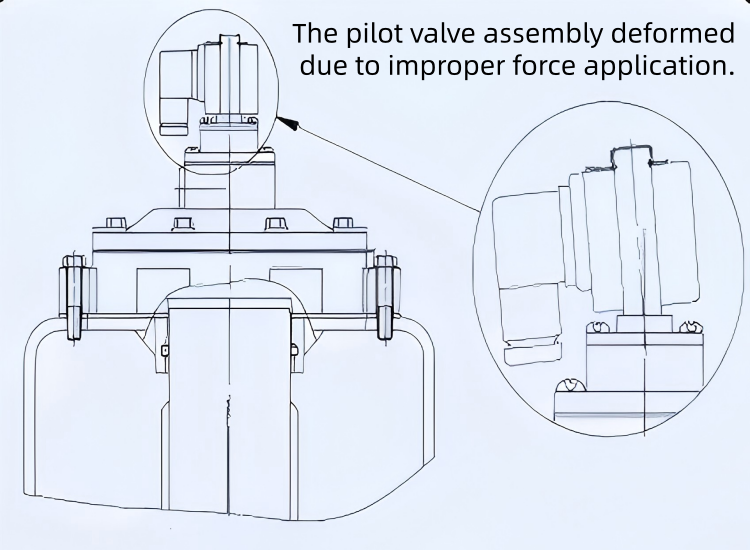 溶接スパッタやダイアフラムの高温損傷を防ぐため、設置後はエアタンク、接続フランジ、ブローパイプなどの溶接作業を禁止します。ソレノイドバルブパイロットアセンブリへの衝撃による損傷を防ぐため、輸送または設置の際は慎重に扱ってください。衝撃による損傷によりスプールスリーブが変形し、可動ステムが詰まり、バルブの動作が妨げられる可能性があります。